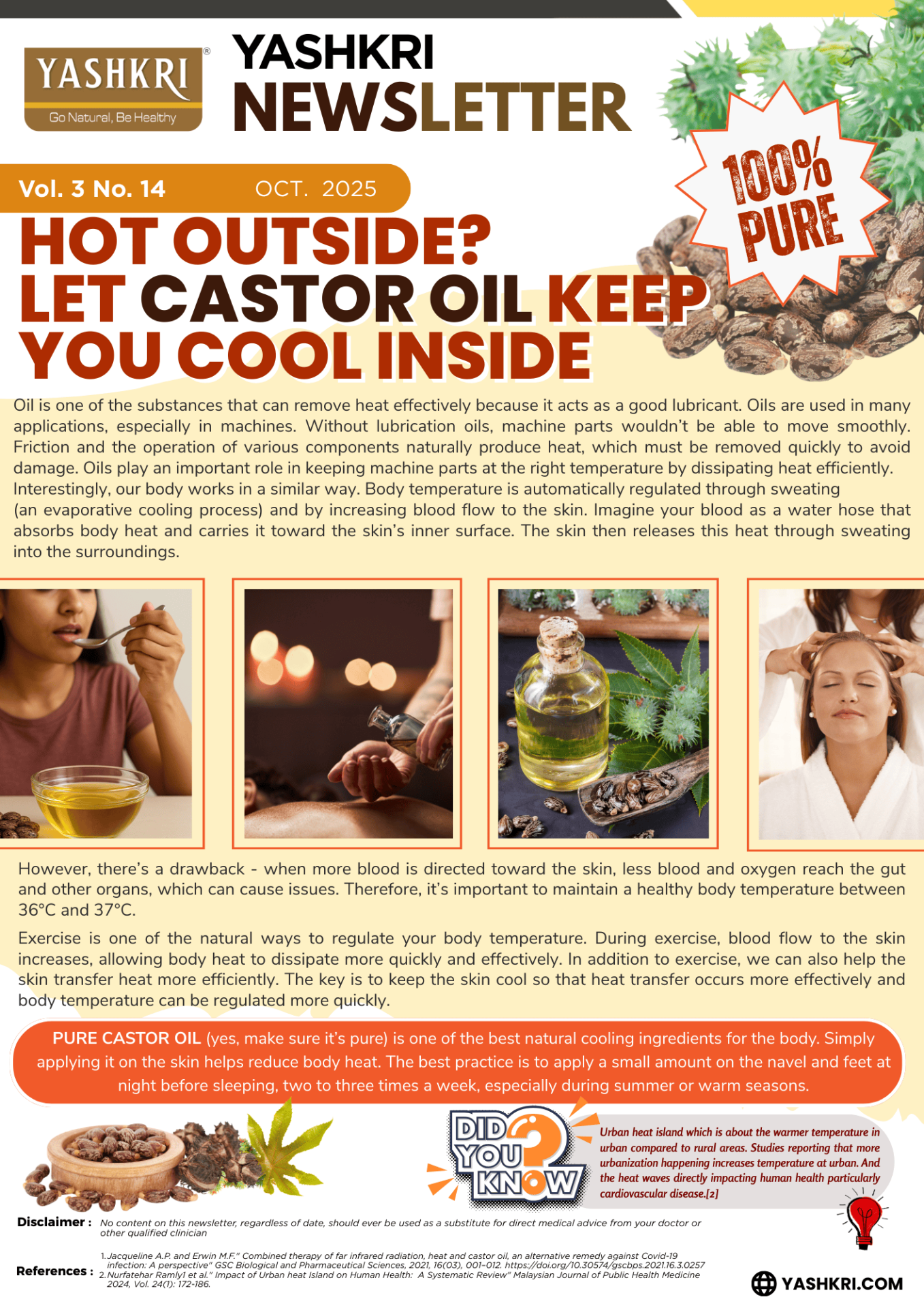 Vol. 02 , No. 14, Keywords : Castor oil, Body Heat, Cooling