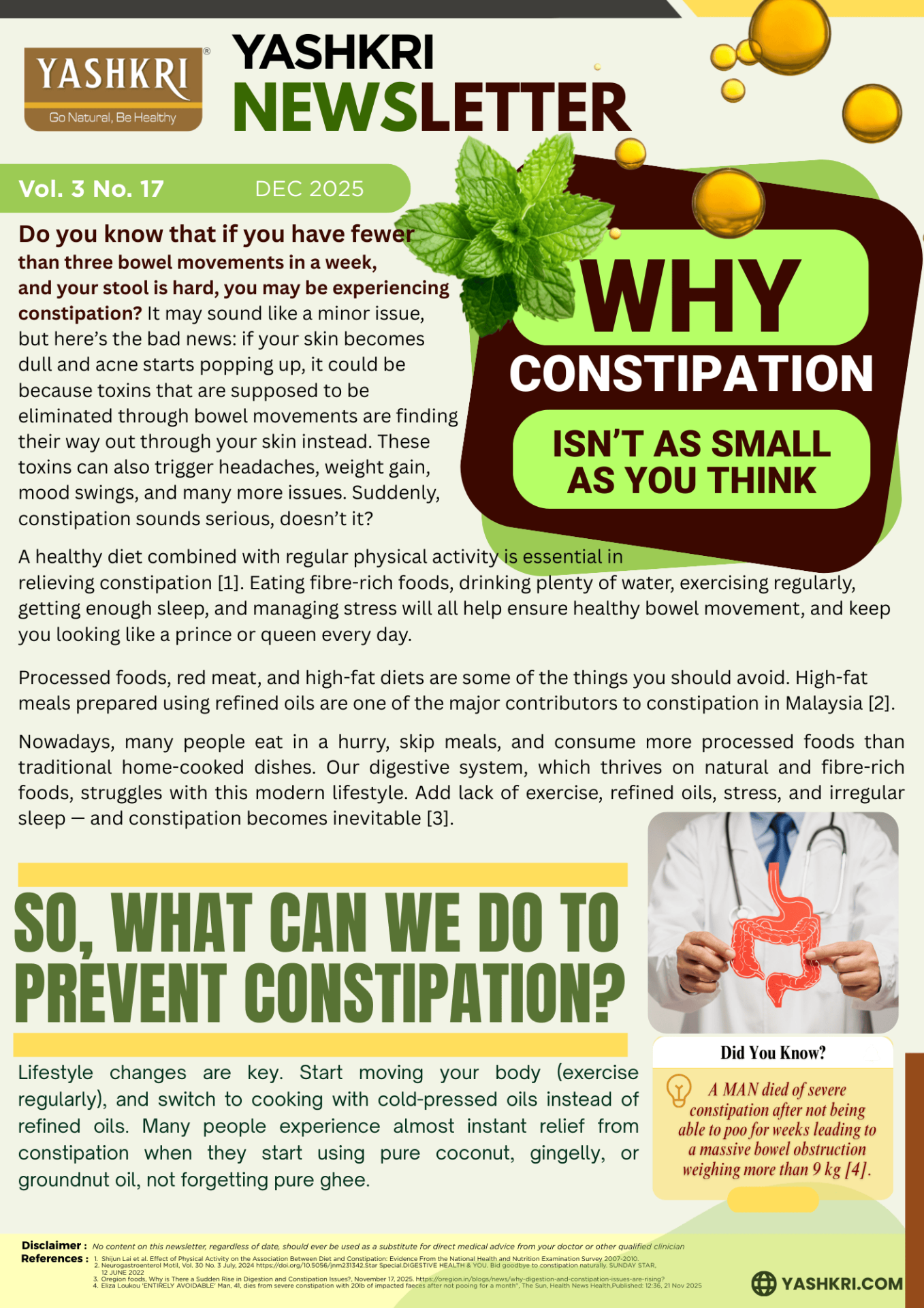 Vol. 3, No. 17, Keywords : Constipation, Skin Acne, Pure Cold-Pressed Oils