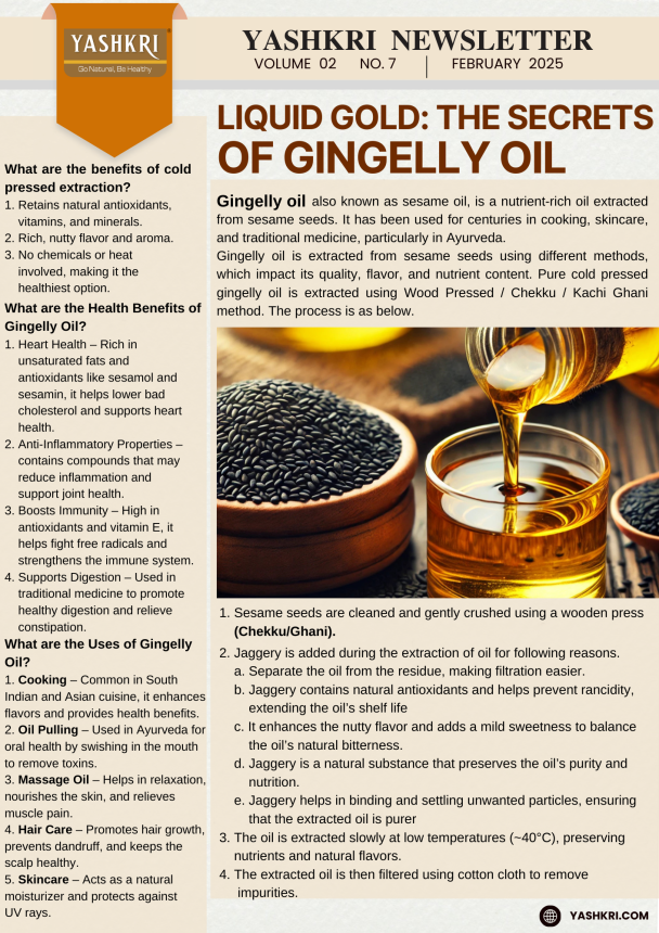 Vol. 2. No. 7, Keywords : Gingelly Oil, Extraction, Benefits.